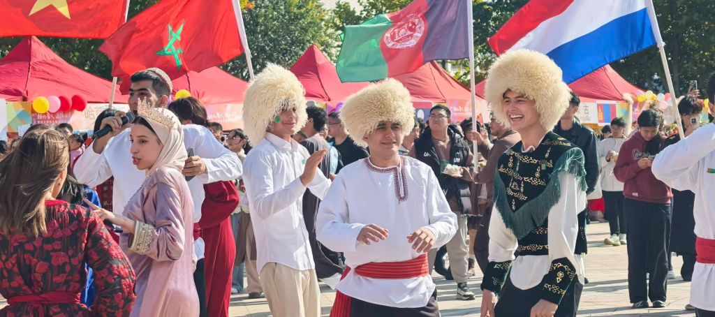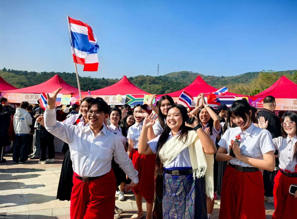 游园巡展环节中,国际学生们挥舞着各国国旗,汇聚成多彩的海洋。这幅“各美其美,美美与共”的和谐图景,正是学校推动构建人类命运共同体的真实写照。