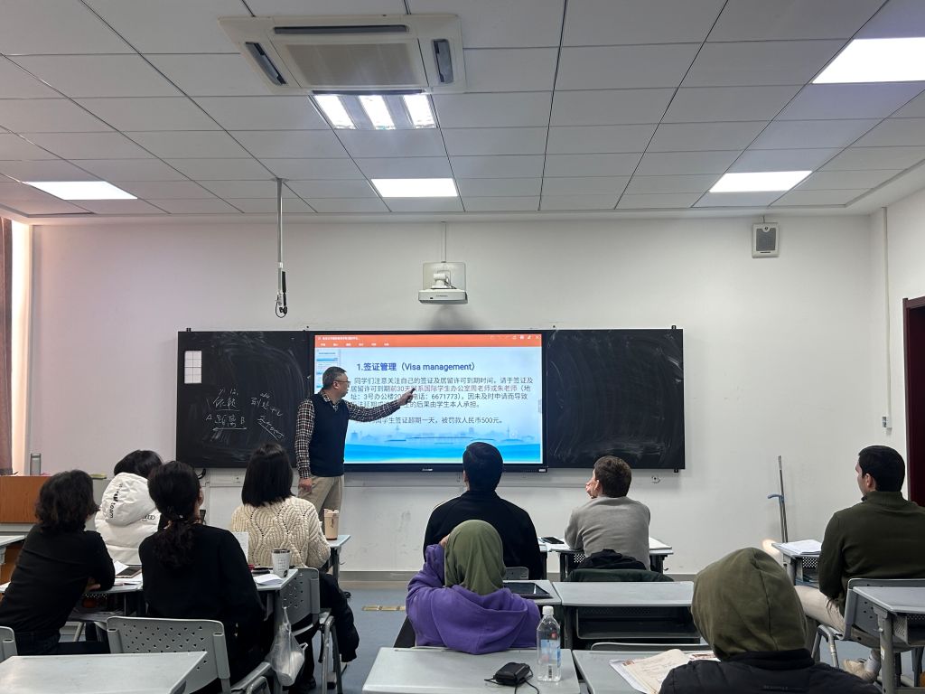 各班班主任聚焦国际学生日常管理重点,围绕签证管理、住宿管理、非法打工、勤工俭学等多个方面,展开针对性普法教育。首先强调的是签证管理的重要性,提醒同学们关注签证的到期时间,避免因逾期带来不便和问题;在住宿管理方面,会议明确要求所有国际学生必须严格遵守住宿登记制度,无论是学期中离开本地或出入境、住址变更等都需及时报备;针对打工问题,班主任重申禁止非法打工的规定。目前,学校和学院正在积极与出入境管理部门协商推进国际学生在校学习期间申请勤工助学事宜。