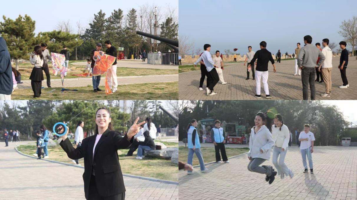 随后,中外学前往东炮台参观海防遗迹、远眺山海风光,通过协作放风筝、集体跳大绳扔沙包、踢毽子等游戏,享受春日海滨的轻松与欢乐。